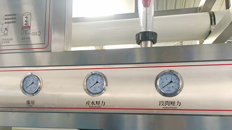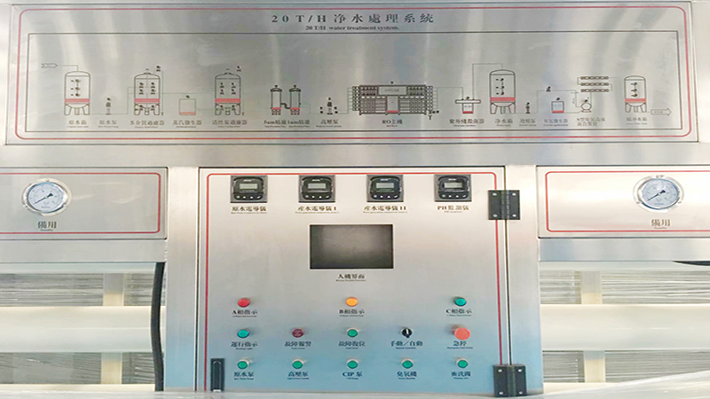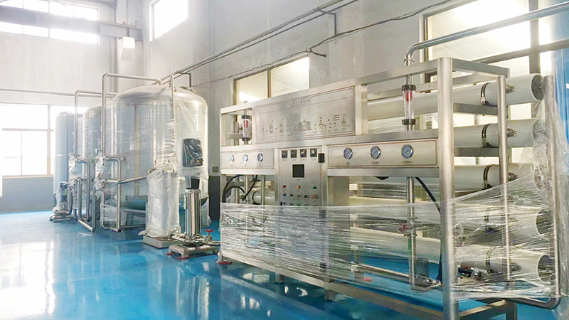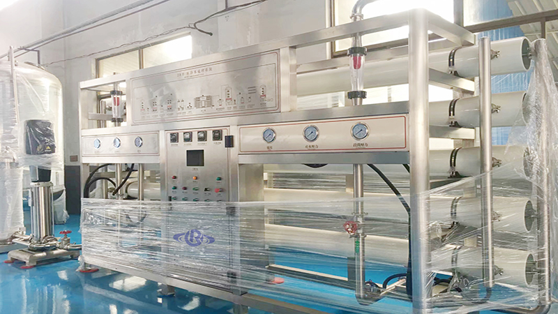 第四级预处理系统:采用5微米孔径精密过滤器使水得到进一步净化,使水的浊度和色度达到优化。保证RO系统的进水要求。纯净水设备主机系统采用反渗透技术进行脱盐处理,反渗透膜孔径仅为0.0001微米,能去除有害的可溶解性固体及细菌、病毒等 ,脱盐率达99.6%以上,生产出符合国家标准的纯净水,主机部分包含保安过滤器、高压泵和反渗透膜,保安过滤器为以上的第四级预处理系统,高压泵是主机上的核心设备之一,为反渗透膜元件提供足够的压力,以克服渗透压及运行阻力,满足装置达到额定的出水量。