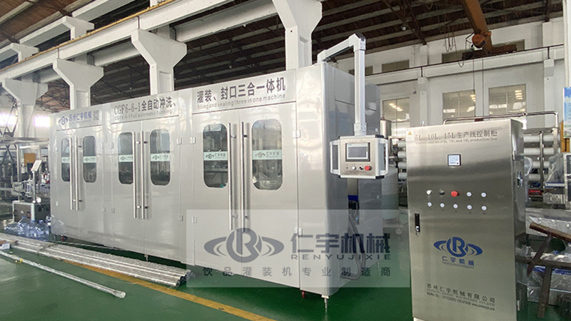 3L-15L大瓶水灌装机,在一机上实现冲瓶、灌装、封盖三道工序,缩短了物料与外界接触时间,提高了卫生条件,悬挂式卡瓶口输送瓶结构,更换瓶型更方便.快捷省力,主机采用先进的PLC可编程自动控制技术,关键的电器元件均采用国际知名商品的产品。