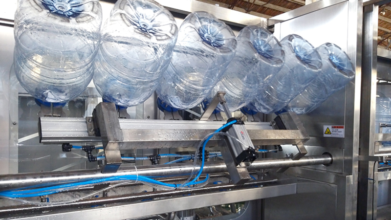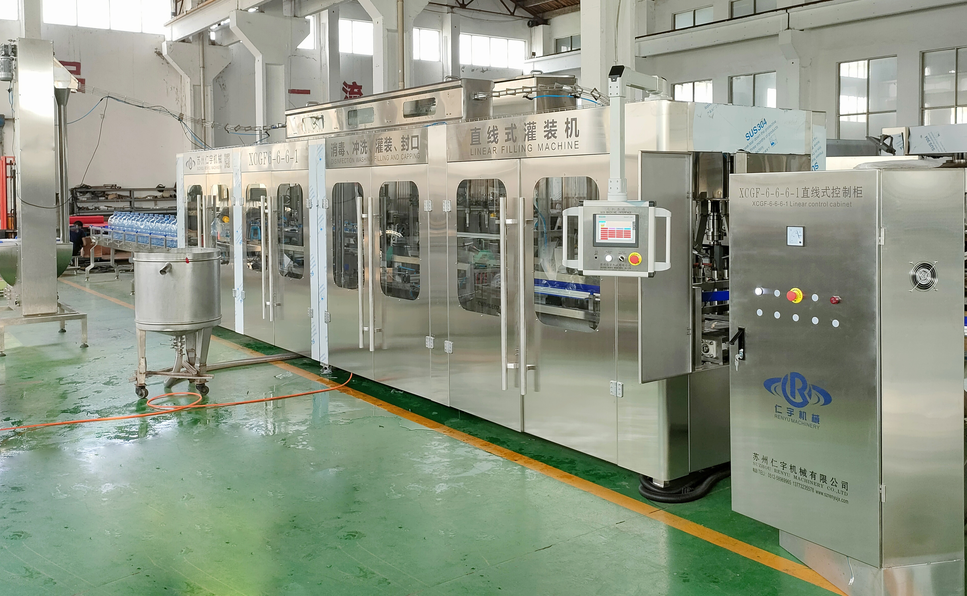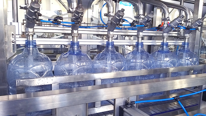 本公司瓶装水罐装设备在一机上实现冲瓶、灌装、封盖三道工序,缩短了物料与外界接触时间,提高了卫生条件,悬挂式卡瓶口输送瓶结构,更换瓶型更方便.快捷省力,主机采用 的PLC可编程自动控制技术,适用于PET瓶包装的纯净水、矿泉水、山泉水、自然水等不含汽瓶装水灌装生产。可在一台机器上实现3-15L兼容,5-20L兼容。产能400-3000瓶/时可按需定做。