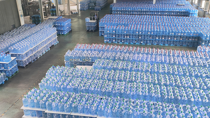 码垛机:自动排列成品桶装水产品,按设定好的程序依次堆放桶装水,大大减轻了人力。